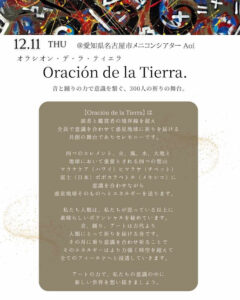 『Oración de la Tierra ー大地への祈りー』は 演者と鑑賞者の境界線を超え、全員で意識を合わせて惑星地球に祈りを届ける共創の舞台でありセレモニーです。